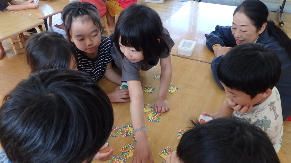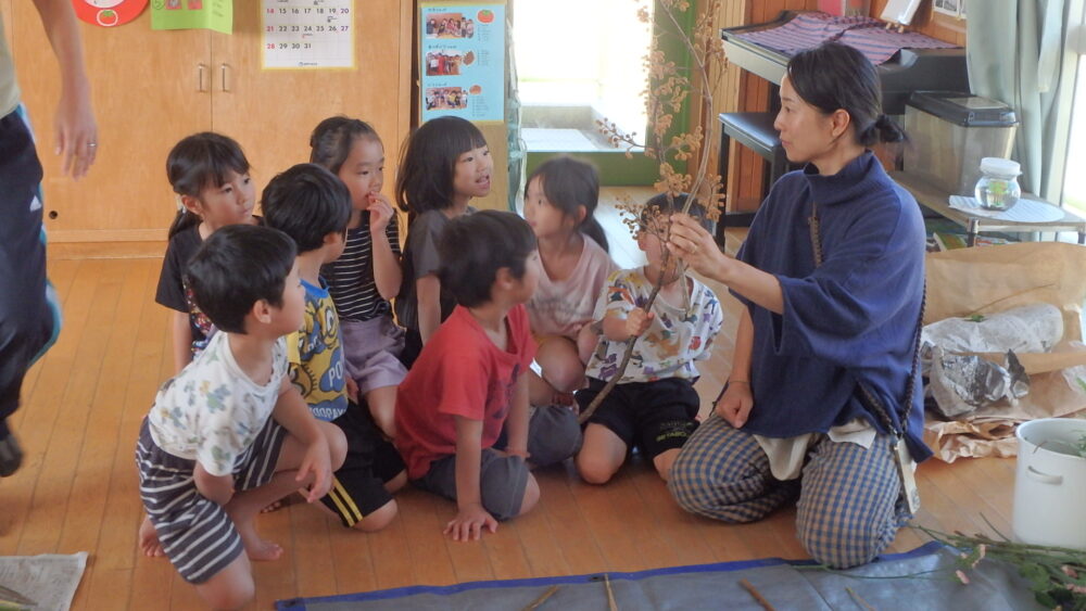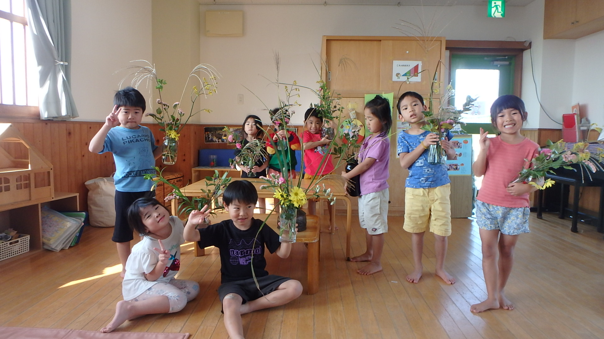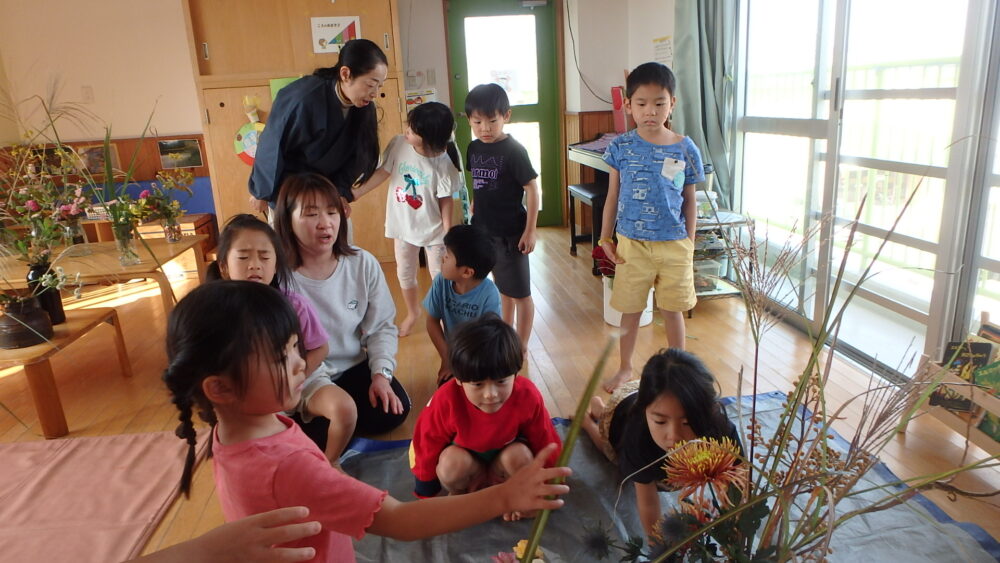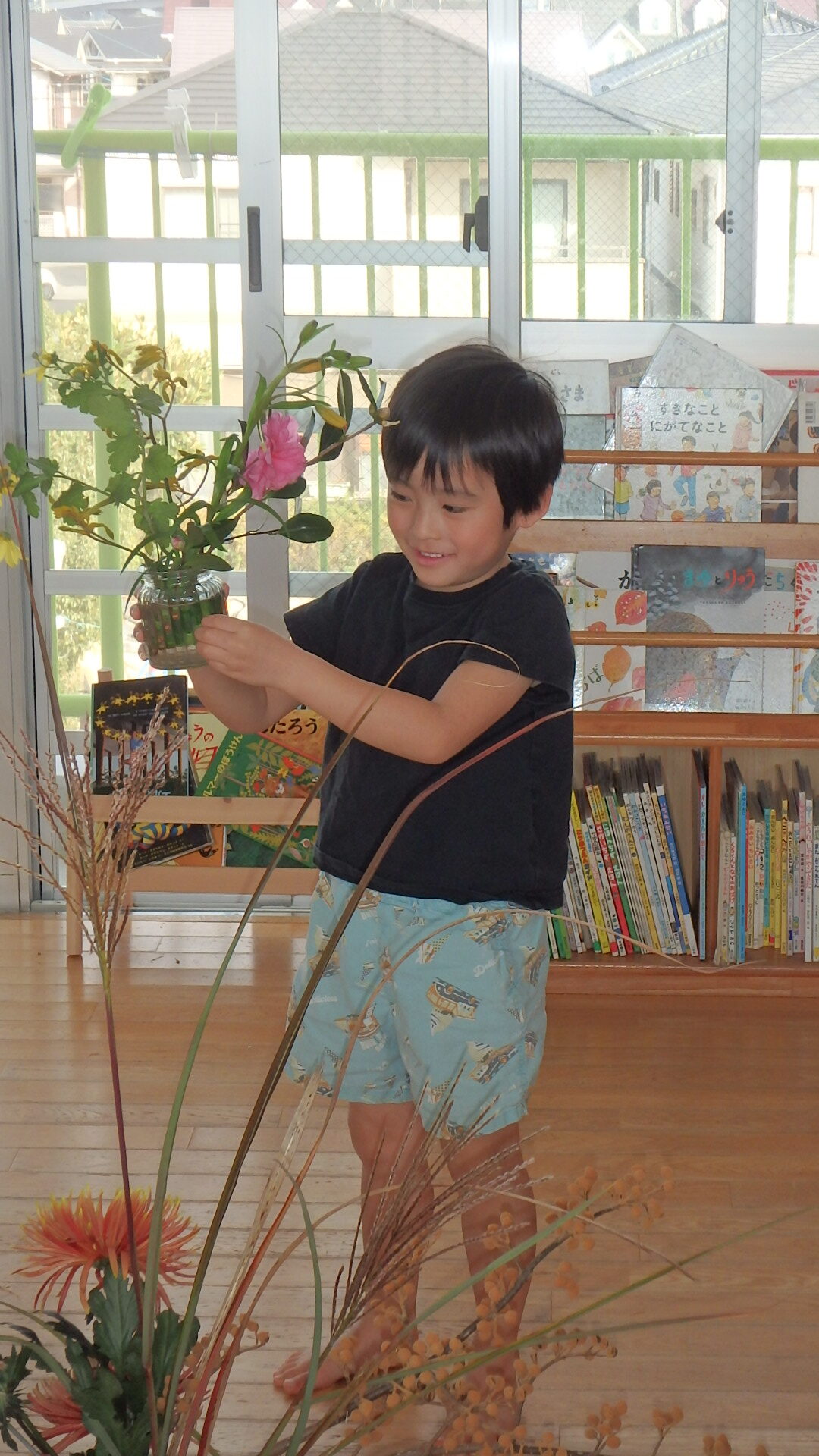 その人の事を思って生けてみようね」の言葉に真剣な表情の子どもたち。 思い思いに生けていましたよ。