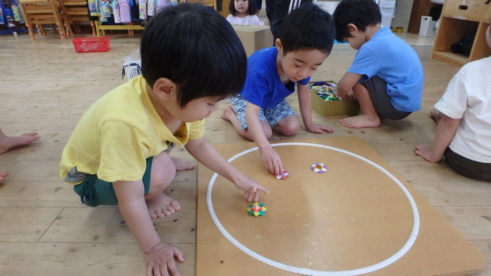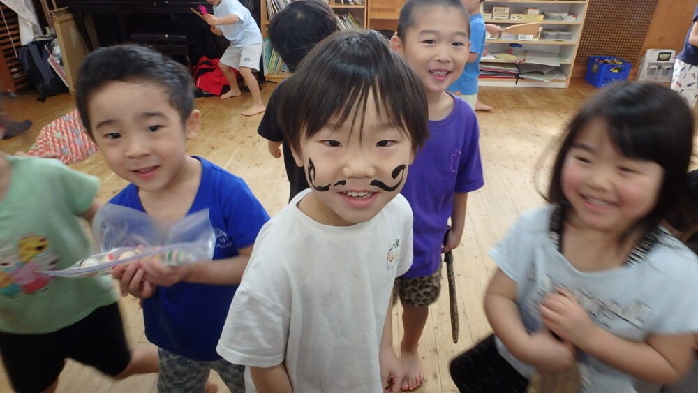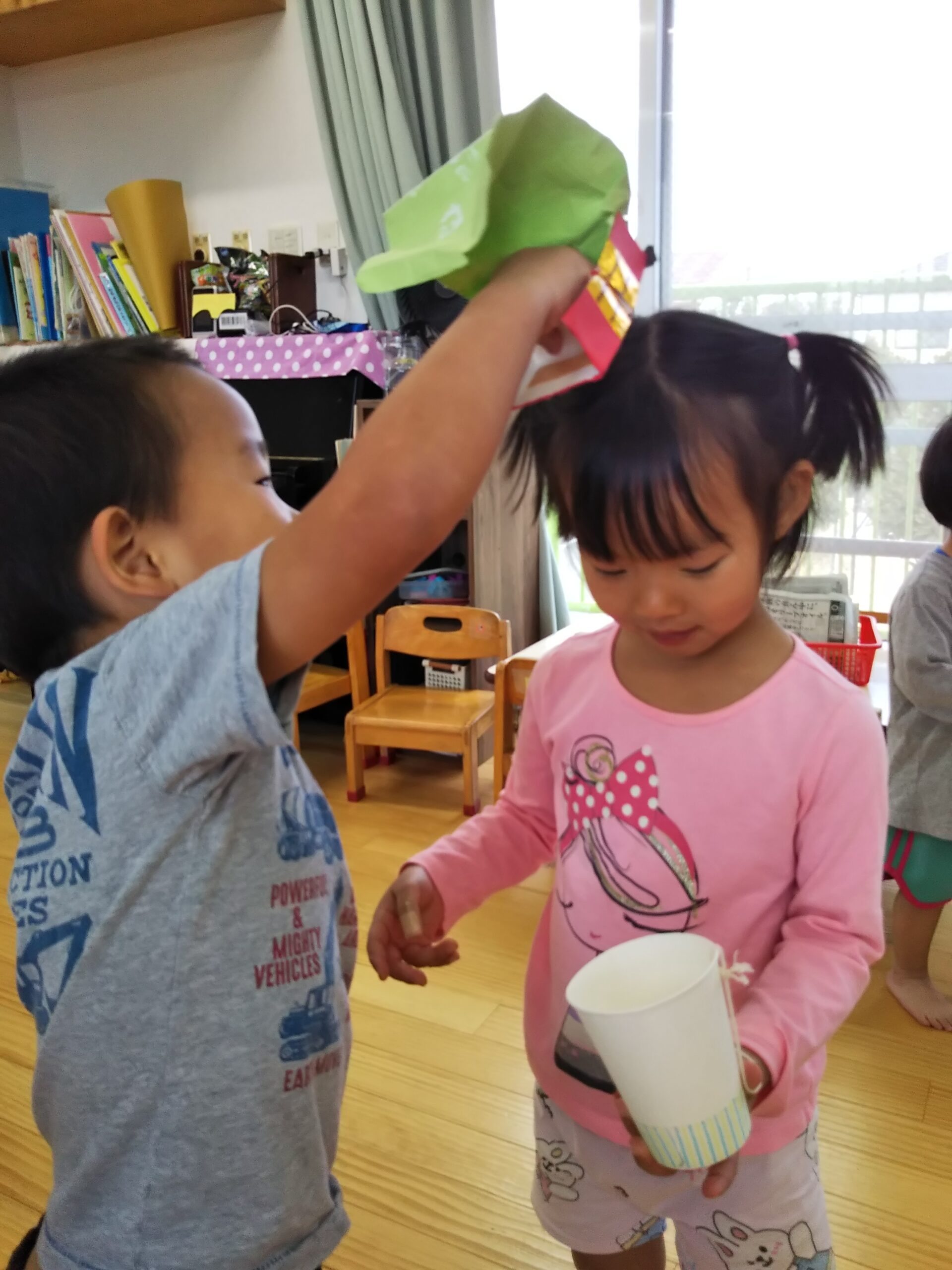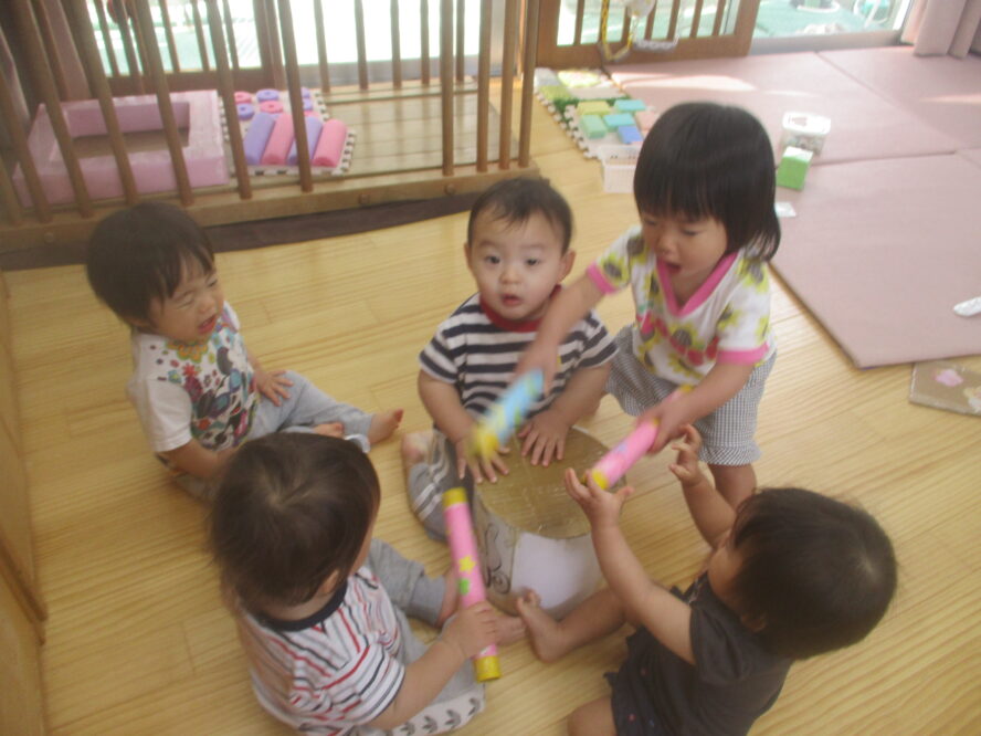 分園でもふくわらいあそび。お馬さんをつくるよ~・・・